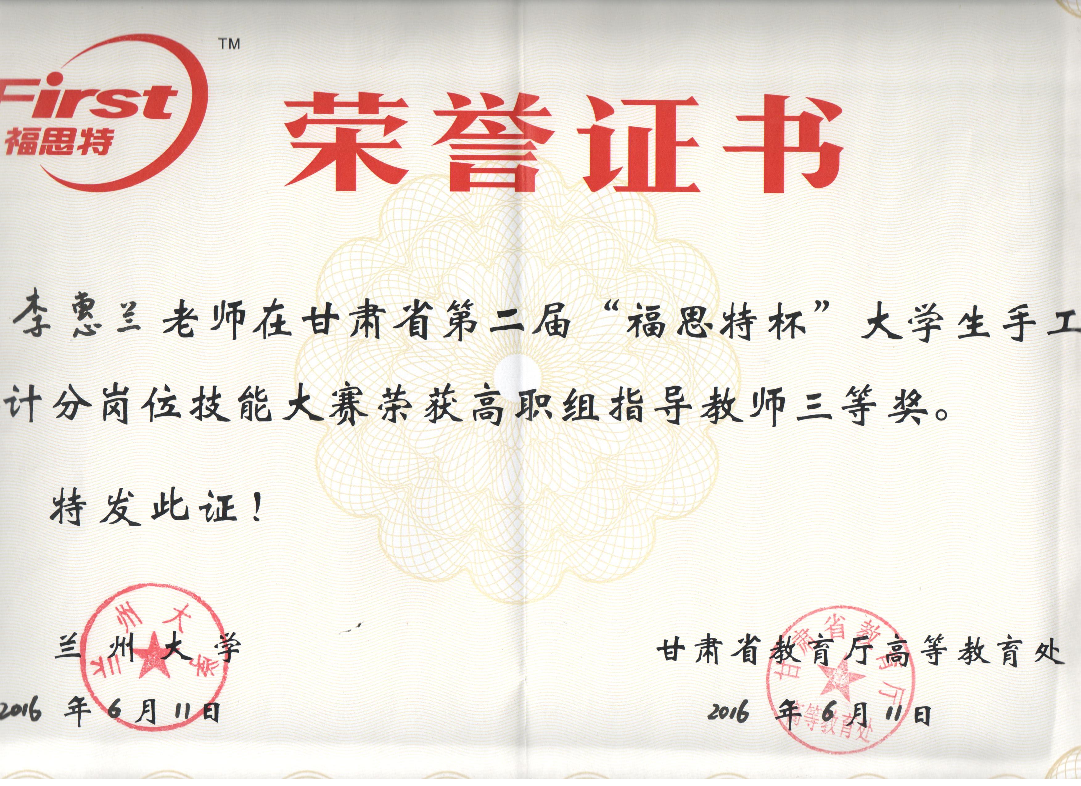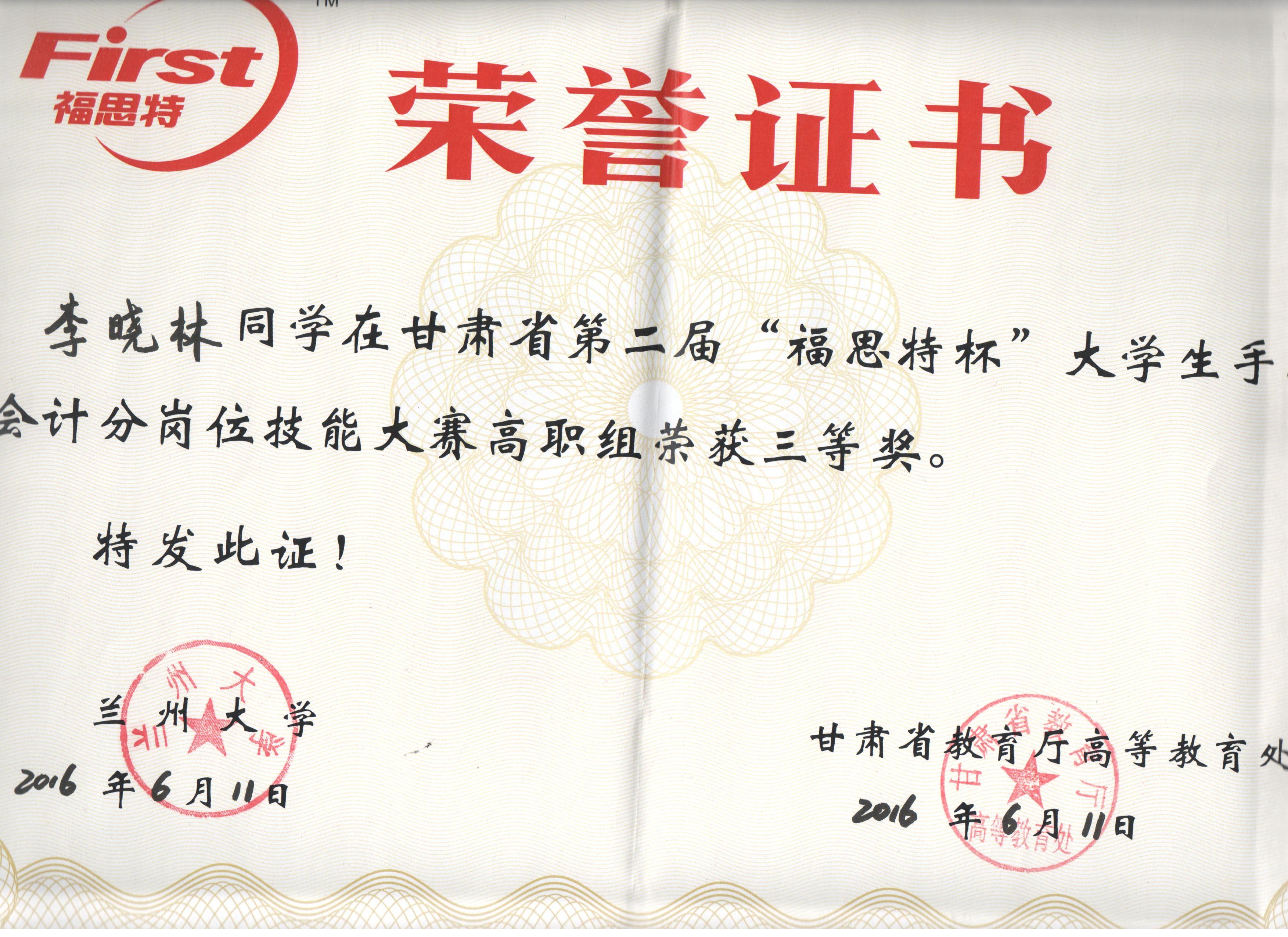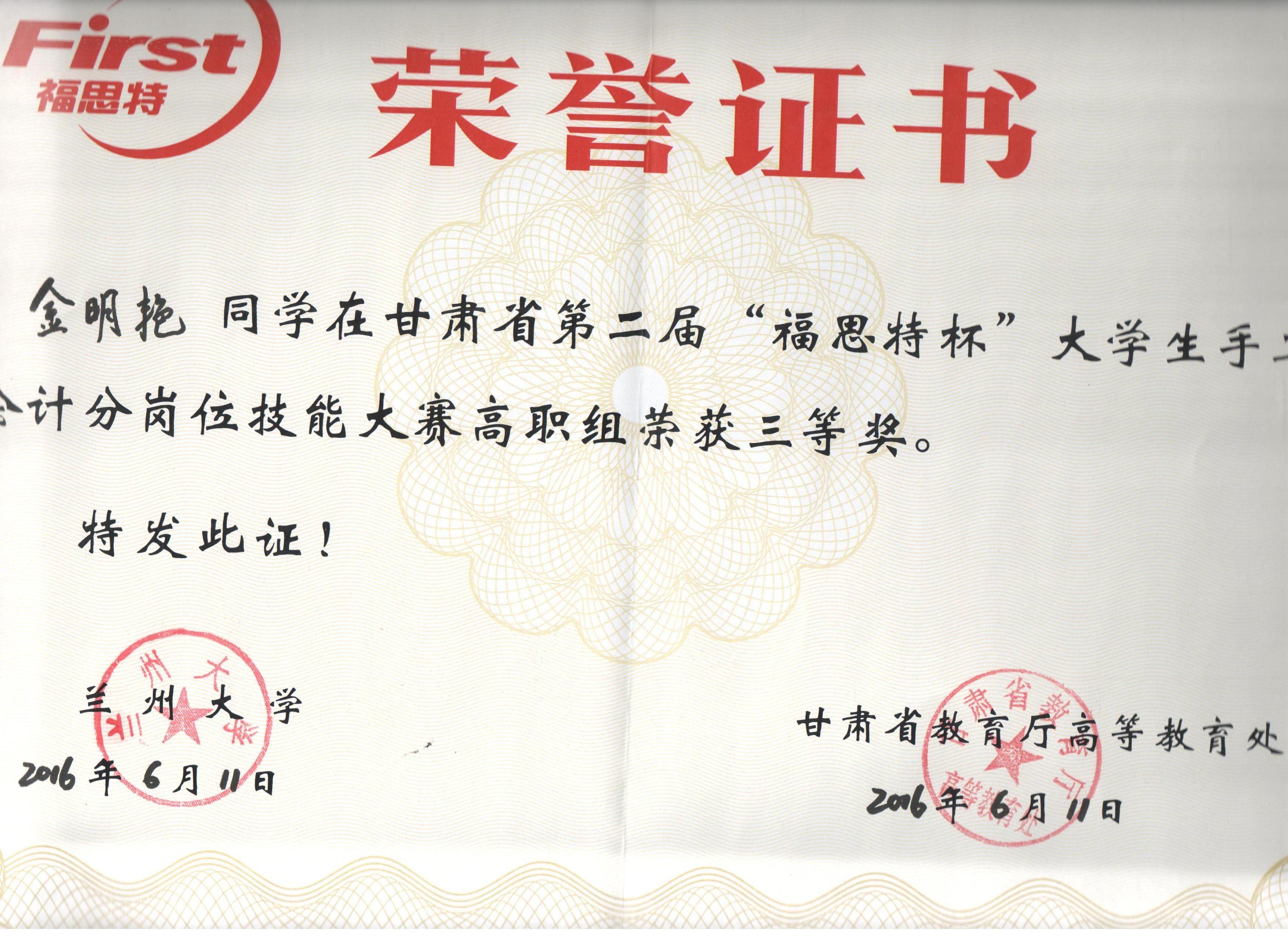 經(jīng)濟(jì)管理系李惠蘭老師指導(dǎo)我系會(huì)計(jì)專業(yè)學(xué)生參加甘肅省第二屆“福思特”大學(xué)生手工會(huì)計(jì)分崗位技能競(jìng)賽,榮獲高職組三等獎(jiǎng)。