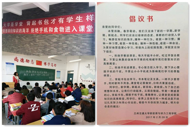 新學(xué)期伊始,新能源學(xué)院要求所有班主任及輔導(dǎo)員老師除了做好學(xué)生課堂管理工作、宿舍安全衛(wèi)生工作、密切關(guān)注“三困生”等常規(guī)工作之外,重點(diǎn)部署了安全預(yù)警教育和“三要求一倡導(dǎo)”教育活動(dòng),即要求學(xué)生上課必須關(guān)閉手機(jī)、不得將食品帶入課堂、不準(zhǔn)在公共場所吸煙,倡導(dǎo)學(xué)生背書包。