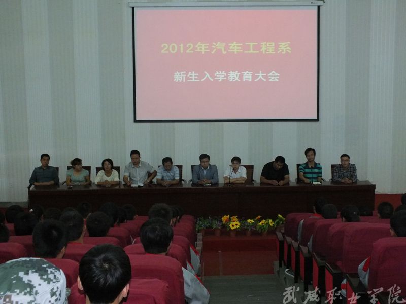 2012年9月3日下午15:00在學(xué)院東階梯教室舉行了汽車工程系2012級(jí)“華汽教育”新生入學(xué)教育大會(huì)。大會(huì)由汽車工程系學(xué)生工作負(fù)責(zé)人許成林主持,全系專兼職教師、專職班主任、中銳派駐教師楊鈞及194名新入校的大中專學(xué)生參加。