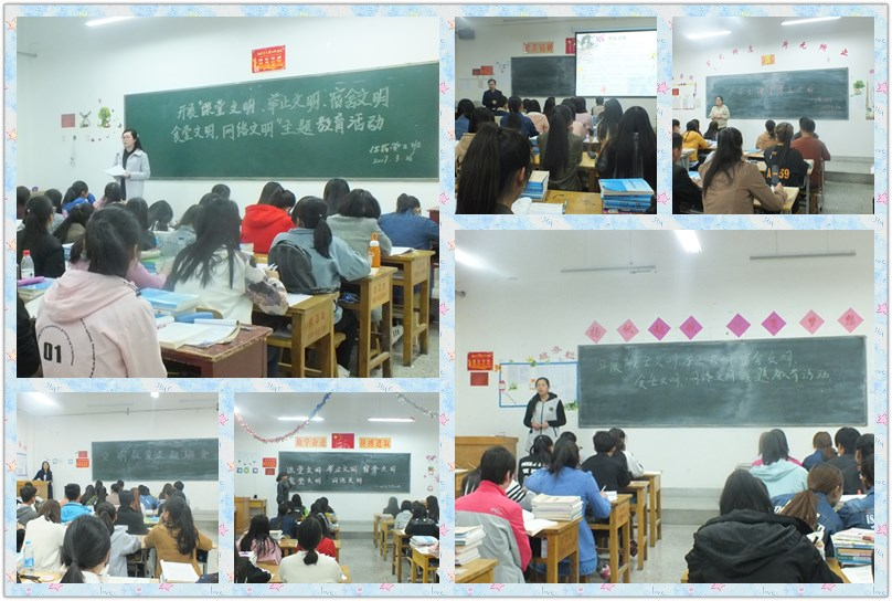 各班班會從什么是文明講起,聯(lián)系生活實(shí)際,講述校園文明、家庭文明和社會文明的重要性。各班主任首先向同學(xué)們闡述了對于當(dāng)代大學(xué)生來說,文明修身和專業(yè)學(xué)習(xí)同等重要,專業(yè)學(xué)習(xí)主要培養(yǎng)大學(xué)生的科學(xué)精神,而文明修身主要培養(yǎng)大學(xué)生的人文精神,二者缺一不可。通過講述身邊同學(xué)的故事,指出校園、家庭和社會上存在的不文明、不和諧現(xiàn)象,要求同學(xué)們對自身言行舉止進(jìn)行約束,共同攜手,提高自身文明行為,提升大家的思想道德和人文素質(zhì)。隨后,由同學(xué)們就“文明行為”發(fā)表了自己的看法,大家由主題聯(lián)想到自己身邊的一些不文明的行為,并就這些不文明行為發(fā)表了自己觀點(diǎn),同時(shí),同學(xué)們就如何提高自身道德素養(yǎng)、如何更好地做到文明修身提出了自己的建議和意見。經(jīng)過同學(xué)們的積極發(fā)言和認(rèn)真討論,大家認(rèn)為只有文明的個(gè)人才會有文明的班級團(tuán)體,才會有文明的校園,才會有和諧的社會。