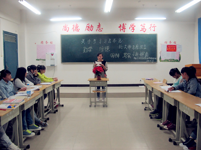 根據(jù)院團(tuán)委開展中國夢學(xué)習(xí)宣傳教育及培育和踐行社會主義核心價值觀活動有關(guān)安排,在習(xí)近平總書記與北京大學(xué)師生座談會上的講話發(fā)表一周年之際,為進(jìn)一步引領(lǐng)帶動廣大青年學(xué)生認(rèn)知、踐行總書記提出的“勤學(xué)、修德、明辨、篤實”的重要要求,我系集中開展了“如何練好習(xí)大大傳授的‘八字真經(jīng)’”主題團(tuán)日活動。