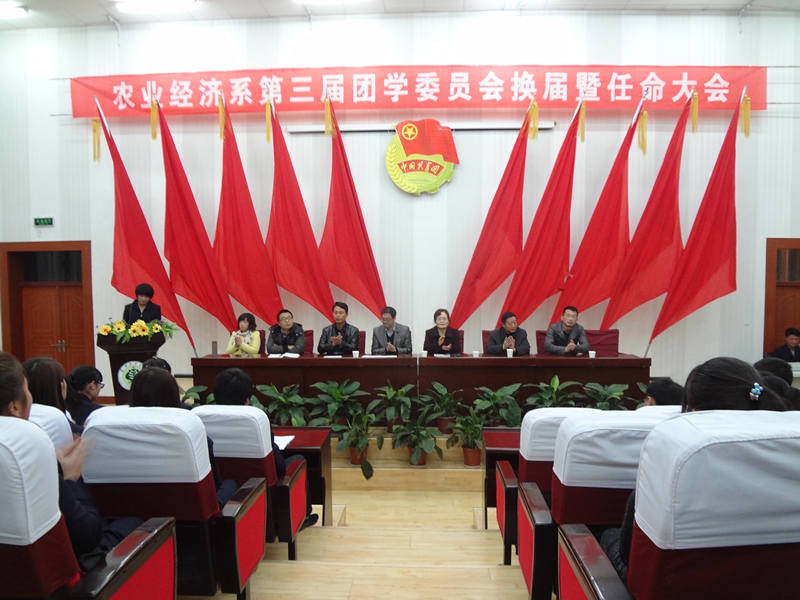 蔡飛介紹了學(xué)生會在學(xué)生工作中所起作用并對新一屆學(xué)生會提出了期望。同時,宣布對農(nóng)業(yè)經(jīng)濟系第三屆團學(xué)干部的任命。大會由第二屆學(xué)生會主席吳光宗做第二屆團學(xué)會工作總結(jié),新當(dāng)選主席趙三桃代表新一屆團學(xué)會宣誓。會上還對優(yōu)秀團學(xué)干部進行表彰。