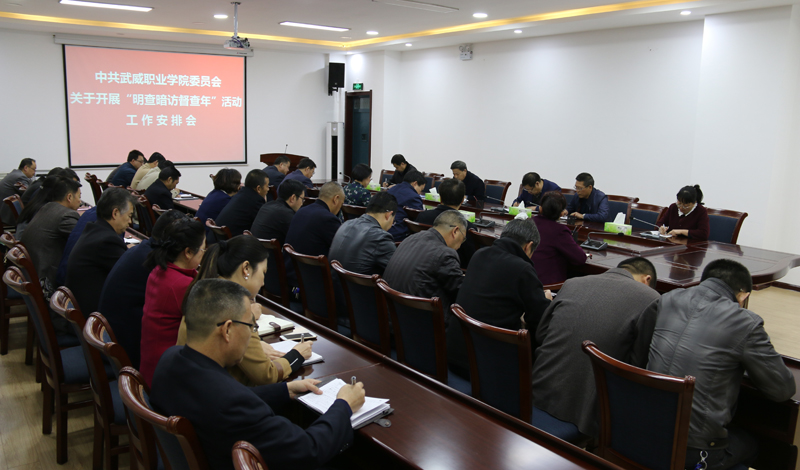 會議傳達學習了甘肅省教育廳關于開展“明察暗訪督查年”活動的相關通知要求,對學院“明察暗訪督查年”活動進行了安排部署。