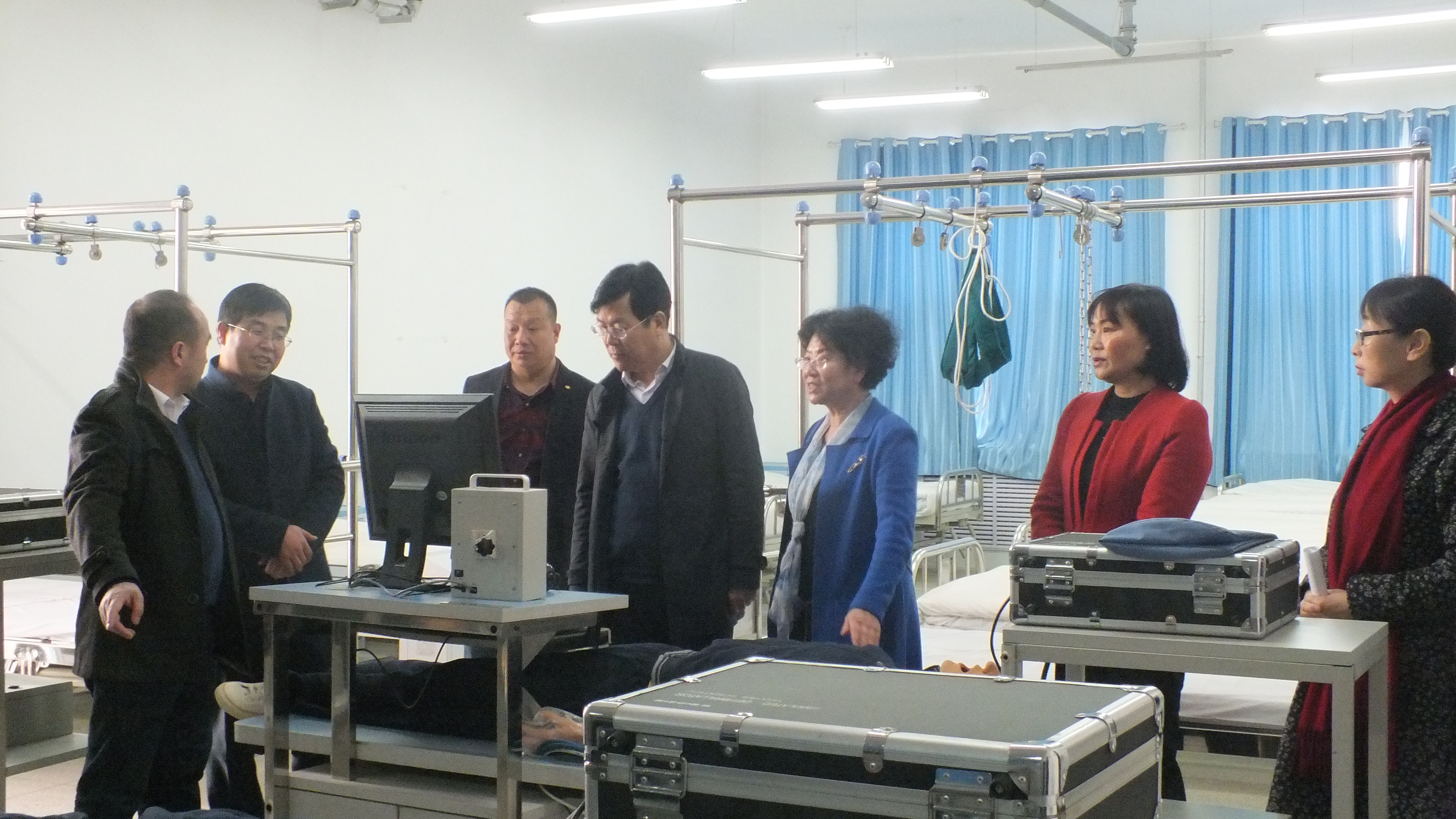 毛校長(zhǎng)一行參觀了護(hù)理系的生命科技館、機(jī)能實(shí)訓(xùn)室、基護(hù)實(shí)訓(xùn)室、內(nèi)外科實(shí)訓(xùn)室等醫(yī)學(xué)類實(shí)訓(xùn)室,詳細(xì)了解了實(shí)驗(yàn)設(shè)備的運(yùn)行情況和實(shí)驗(yàn)實(shí)訓(xùn)課程的教學(xué)管理模式。潘玉華向來賓們介紹了學(xué)院申辦臨床醫(yī)學(xué)專業(yè)的進(jìn)展,以及我院實(shí)訓(xùn)課程建設(shè)和籌建實(shí)驗(yàn)實(shí)訓(xùn)室取得的成果。