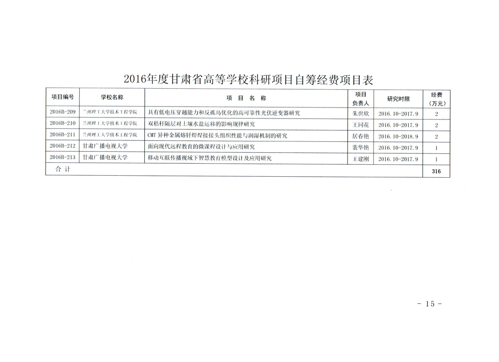 轉(zhuǎn)發(fā)甘肅省財政廳 教育廳文件 關(guān)于下達2016年度甘肅省高等學(xué)??蒲许椖孔曰I經(jīng)費項目的通知