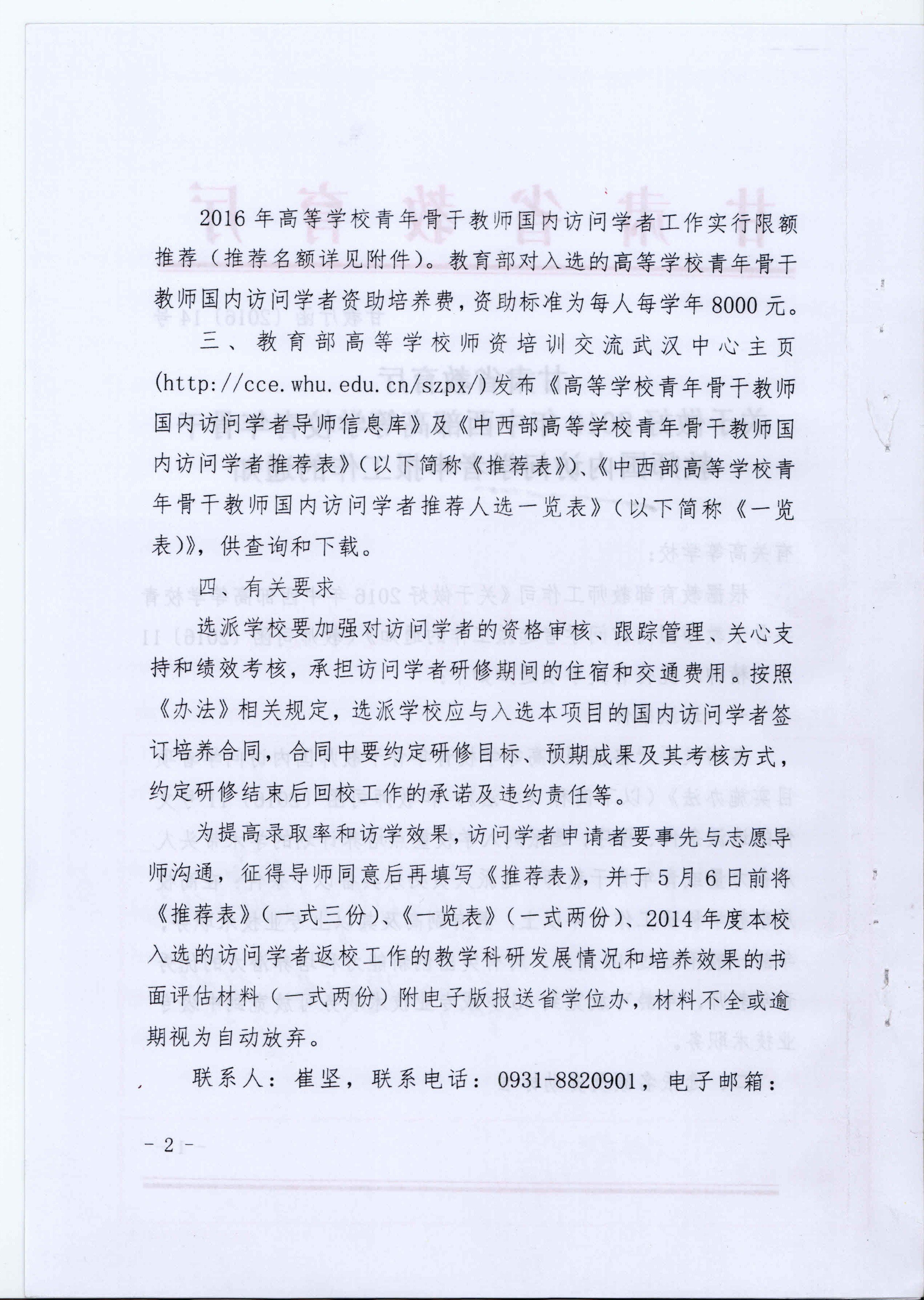 關(guān)于做好2016年青年骨干教師國內(nèi)訪問學(xué)者申報工作的通知