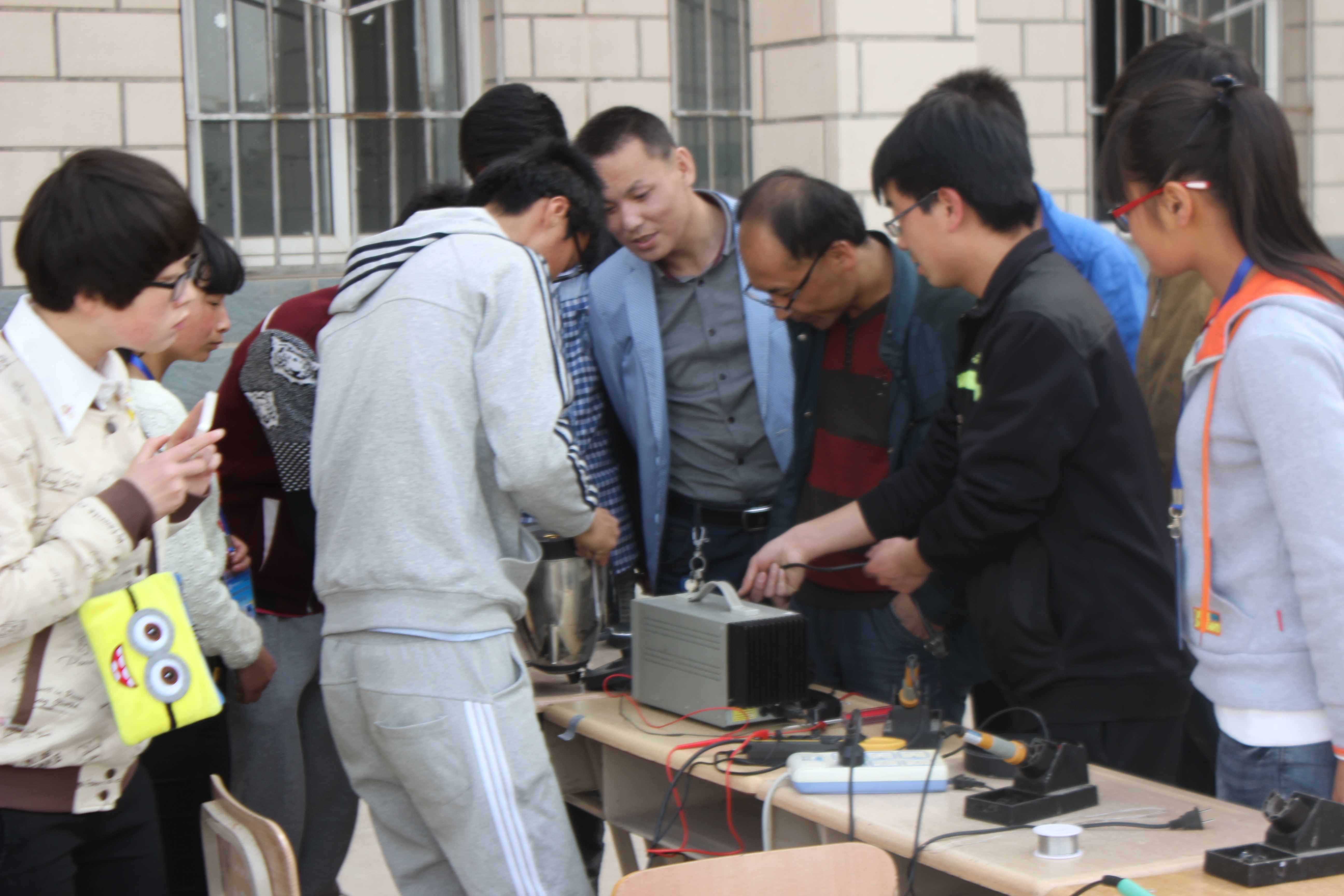 為引導(dǎo)廣大團(tuán)員青年積極參與青年志愿活動(dòng),發(fā)揚(yáng)雷鋒精神,弘揚(yáng)民族精神。4月15日至17日電子信息工程系小牛頓電子協(xié)會(huì)、青年志愿者協(xié)會(huì)在學(xué)院尚德樓北側(cè)廣場(chǎng)舉辦了“義務(wù)維修”活動(dòng)。小牛頓電子協(xié)會(huì)結(jié)合協(xié)會(huì)自身特色,運(yùn)用所學(xué)的專(zhuān)業(yè)技能,為全院師生免費(fèi)維修各類(lèi)小電器。主要維修的電器有:臺(tái)燈、耳機(jī)、MP3、充電器、音響、電吹風(fēng)等?;顒?dòng)一開(kāi)始就吸引很多師生前來(lái)詢(xún)問(wèn),活動(dòng)現(xiàn)場(chǎng)氣氛融洽,維修員們都忙的不亦樂(lè)乎,他們?cè)诟髯缘膽?zhàn)場(chǎng)上,揮灑著熱情、傾注著努力。