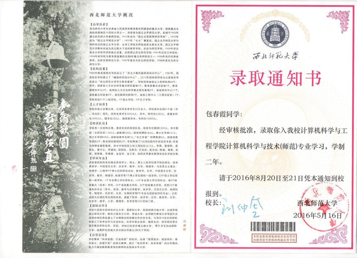 近日傳來喜訊,我系13級計(jì)算機(jī)應(yīng)用大專班包春霞同學(xué)在2016年甘肅省專升本考試中,被西北師范大學(xué)計(jì)算機(jī)科學(xué)與工程學(xué)院錄取。