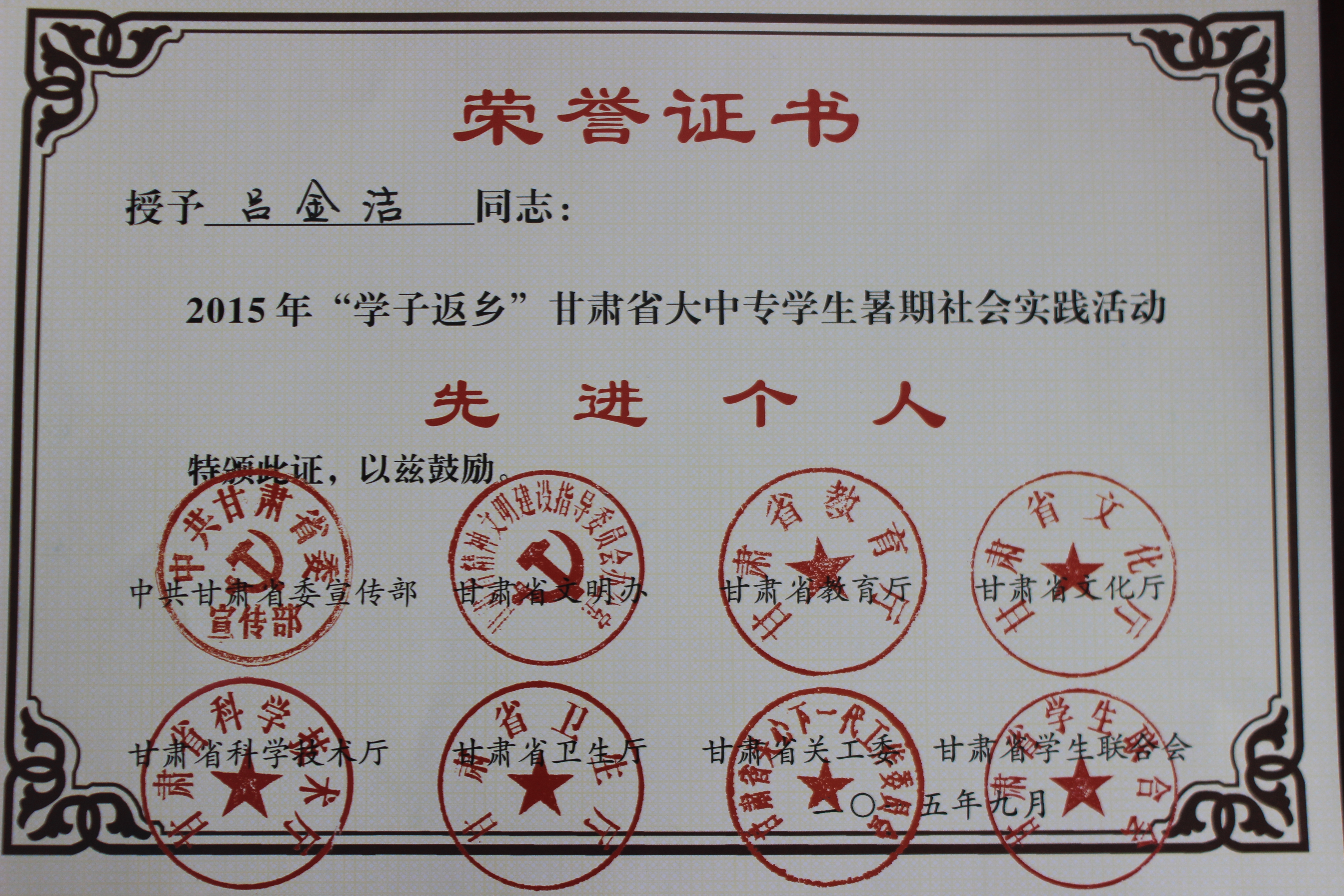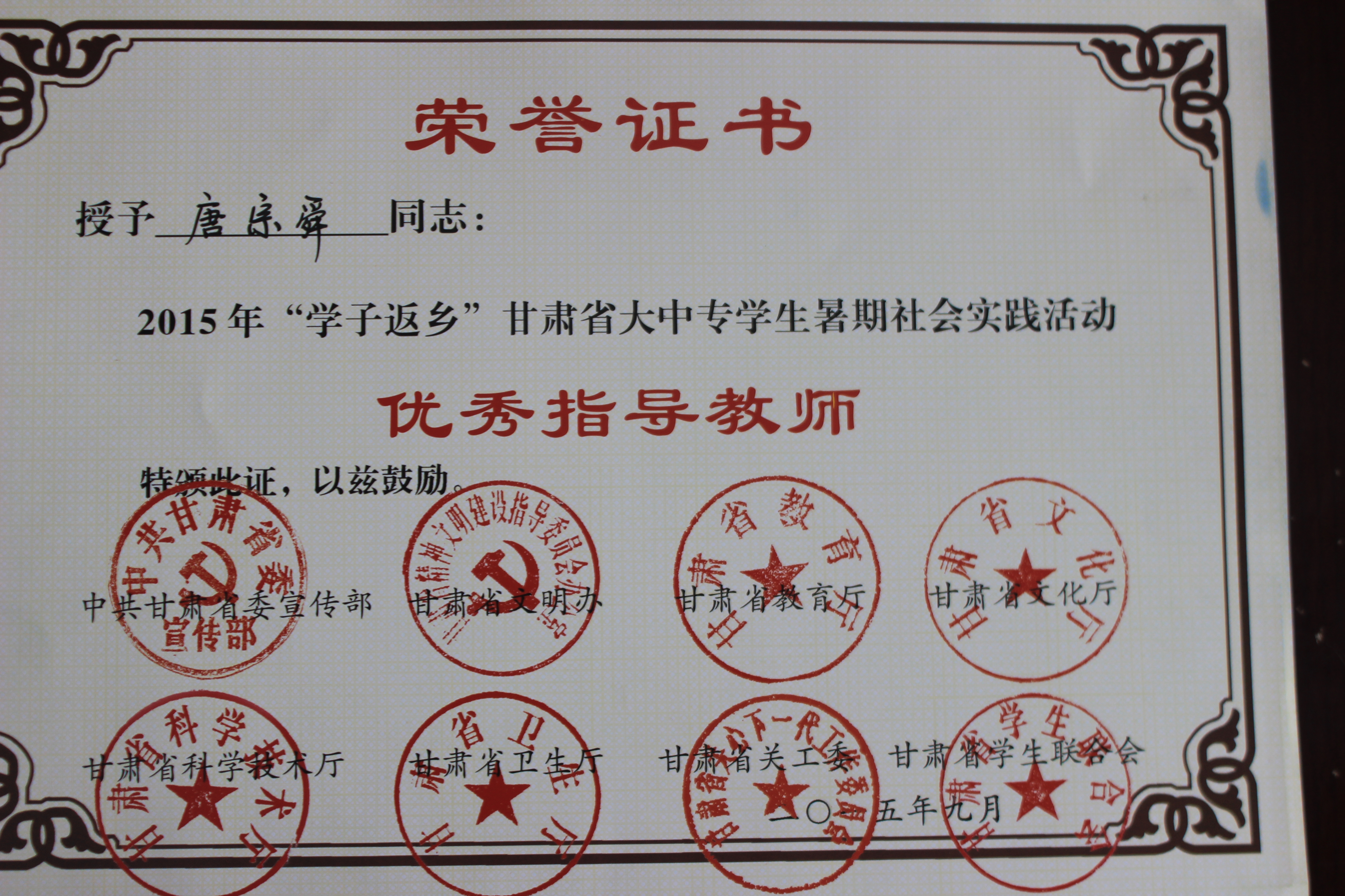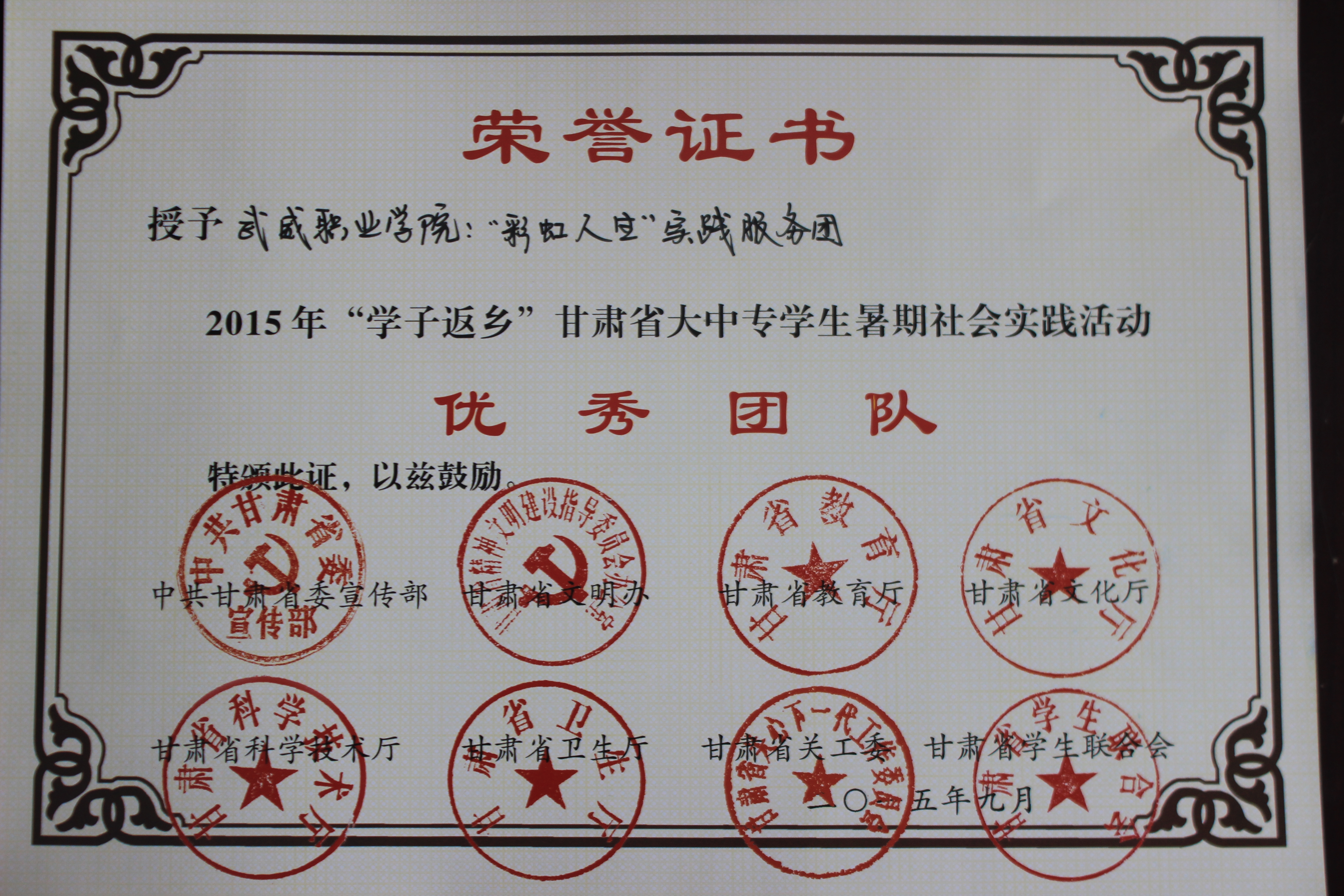 2015年“學(xué)子返鄉(xiāng)”甘肅省大中專學(xué)生暑期社會實踐活動-優(yōu)秀團(tuán)隊