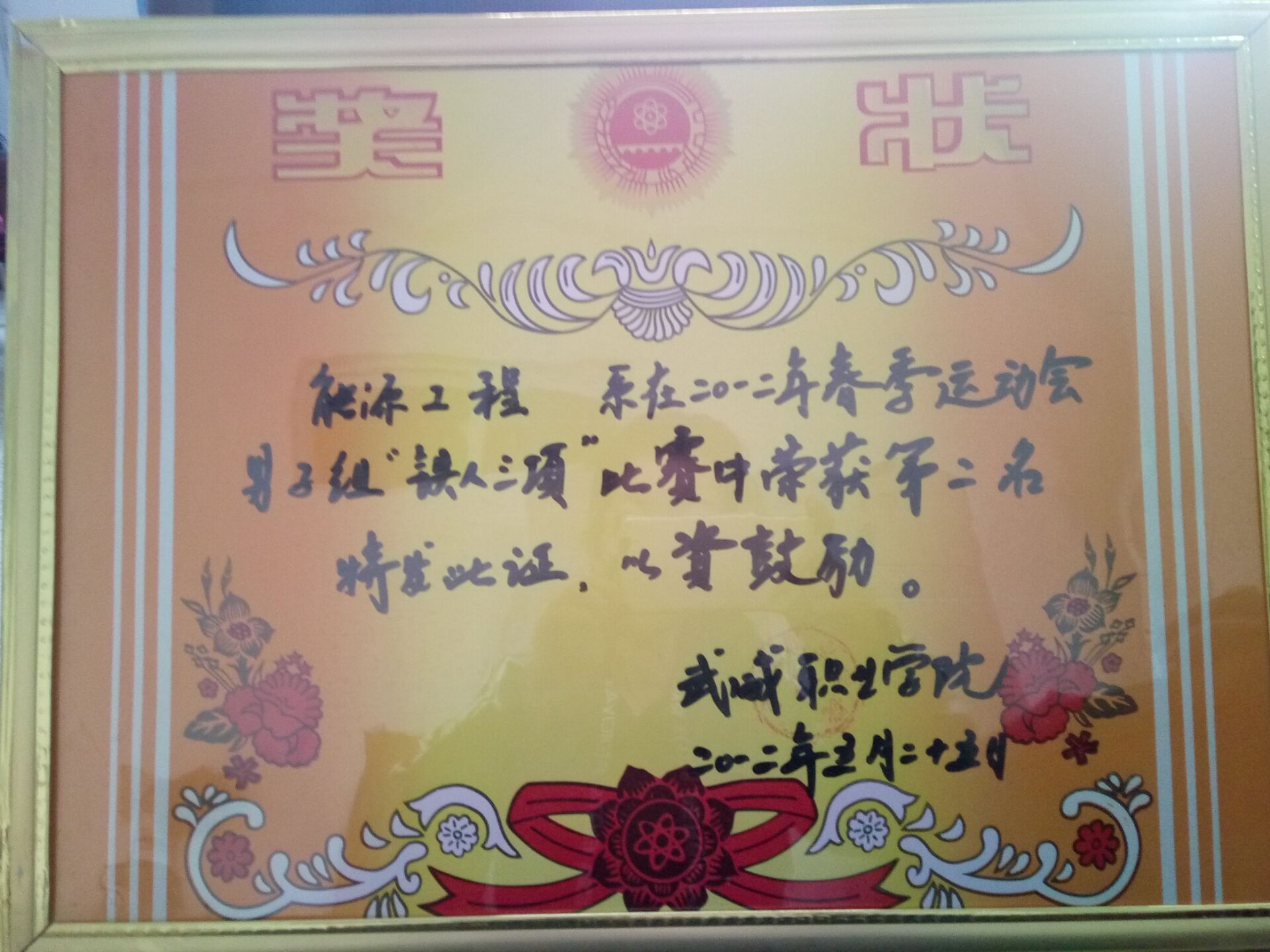 我系代表隊在2012年春季運(yùn)動會“鐵人三項”榮獲第二名