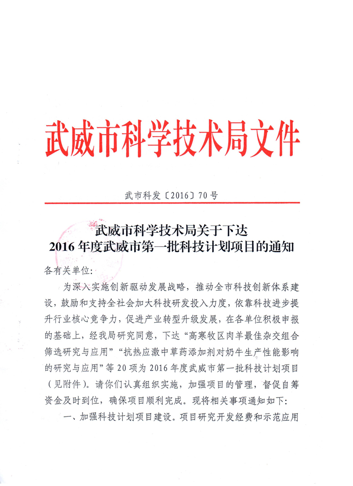 武威市科學(xué)技術(shù)局關(guān)于下達(dá)2016年度武威市第一批科技計(jì)劃項(xiàng)目的通知
