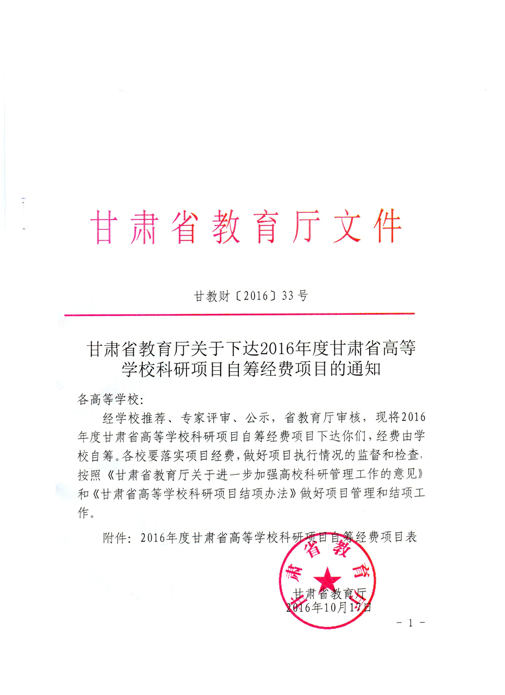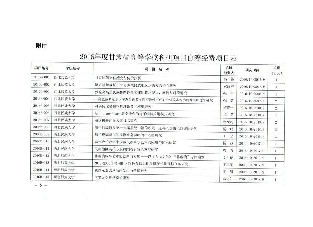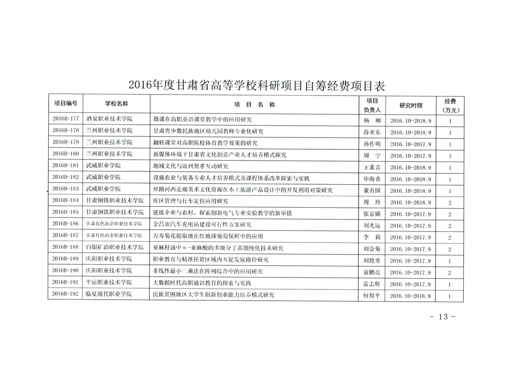 甘肅省教育廳關(guān)于下達(dá)2016年度甘肅省高等學(xué)??蒲许?xiàng)目自籌經(jīng)費(fèi)項(xiàng)目的通知