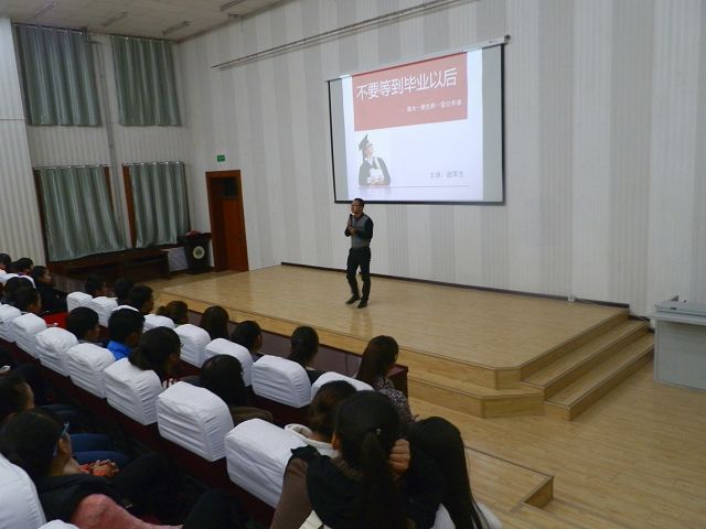 為更好的幫助2014級新生盡快轉(zhuǎn)變角色,適應大學生活,合理規(guī)劃學業(yè)生涯。經(jīng)濟管理系團總支特邀請趙軍生老師,于11月中旬在東階梯教室做了 “不要等到畢業(yè)以后——致新生的一堂公開課”專題講座。