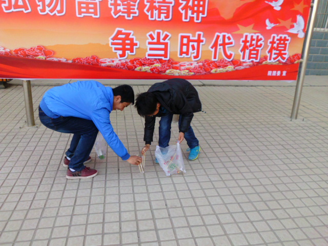 今年3月5日是毛澤東同志題詞“向雷鋒同志學習”50周年紀念日,也是第14個“中國青年志愿者服務日”。3月5日上午10時,我系青年志愿者在院團委的號召組織下,在學院中心廣場、1號教學樓、2號教學樓及南操場周圍展開了義務勞動。將馬路、花園、教學樓及操場周圍死角的紙屑、果皮等垃圾進行了徹底清理。我系青年志愿者發(fā)揮了不怕臟、不怕苦的精神。