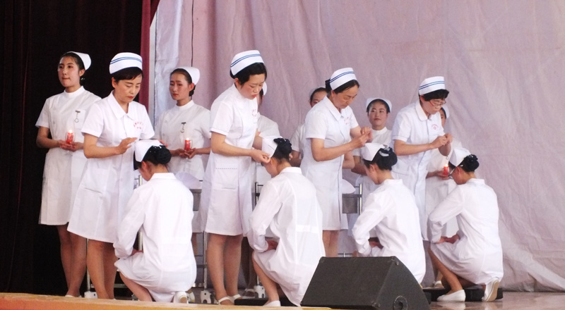 為繼承和弘揚南丁格爾精神,積極推動護(hù)理專業(yè)人才建設(shè)和職業(yè)內(nèi)涵塑造,展示我院護(hù)理專業(yè)師生風(fēng)采,在第106個國際護(hù)士節(jié)來臨之際,學(xué)院于5月12日下午在大禮堂隆重舉辦了慶祝國際護(hù)士節(jié)活動,武威市衛(wèi)生計生委副主任潘玉華、學(xué)院黨委副書記趙明、紀(jì)委書記張富國、副院長王永緒、直屬附屬醫(yī)院護(hù)理部主任、相關(guān)處室領(lǐng)導(dǎo)及護(hù)理系全體師生1200余人參與了本次活動?;顒影ㄗo(hù)士授帽儀式,護(hù)理實踐技能操作表演,第四屆護(hù)理技能大賽頒獎,慶祝“5.12”護(hù)士節(jié)文藝演出等內(nèi)容。