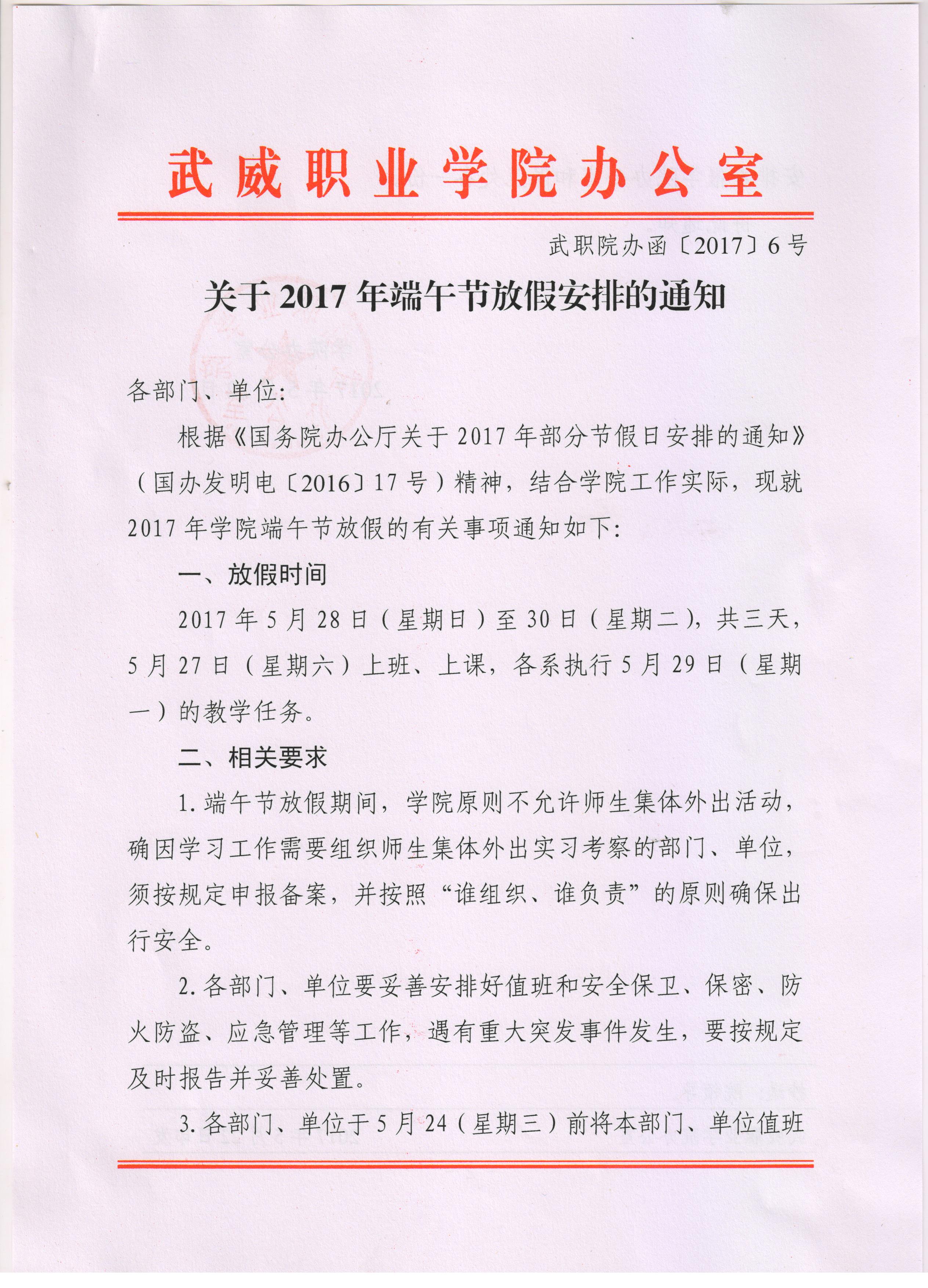 關(guān)于2017年端午節(jié)放假安排的通知