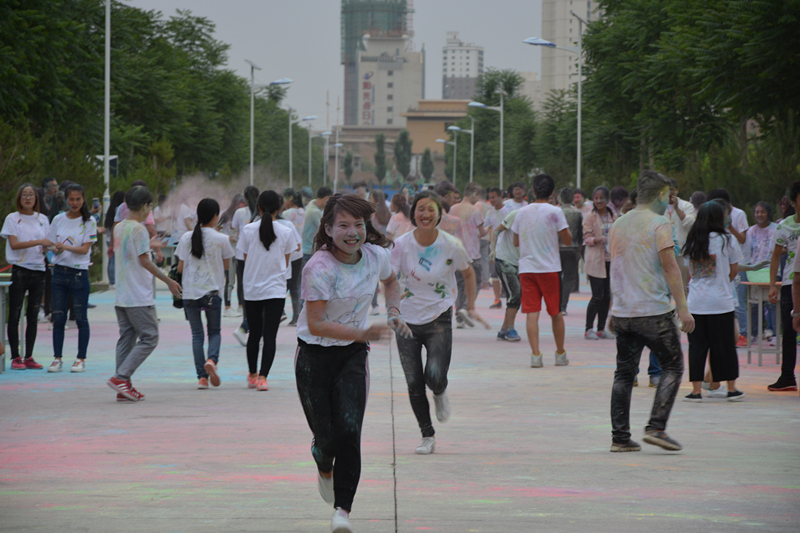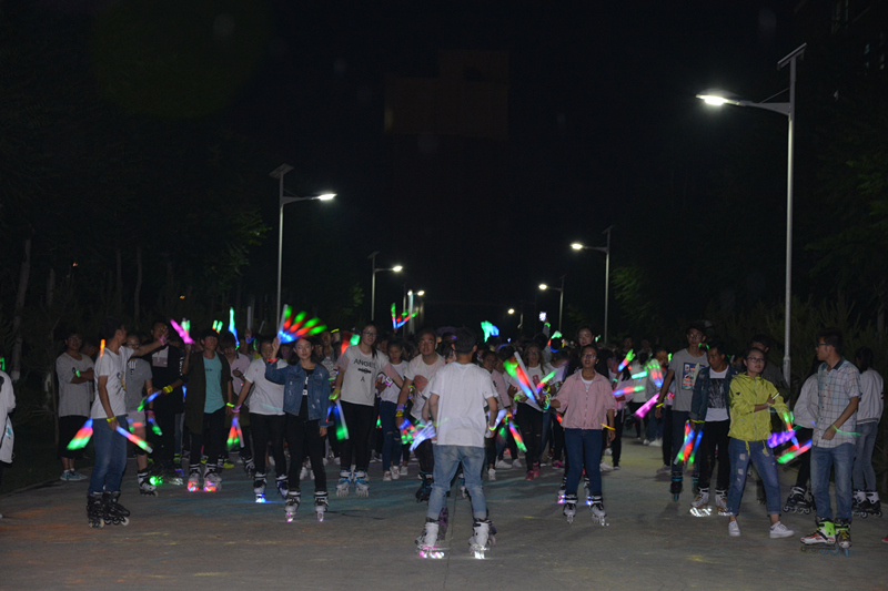下午三點(diǎn),學(xué)院團(tuán)委宋文龍老師在啟動(dòng)儀式上做了熱情洋溢的致辭,團(tuán)學(xué)干部帶領(lǐng)參賽選手開(kāi)啟了本次活動(dòng)的奔跑。本次活動(dòng)由“趣味沖關(guān)”“彩虹跑”“熒光夜跑”三個(gè)環(huán)節(jié)組成。“趣味沖關(guān)”由一系列小游戲組成,需要大家齊心協(xié)力、互相配合完成,同學(xué)們滿(mǎn)懷激情,在奔跑的同時(shí)體驗(yàn)著合作的趣味與快樂(lè)。掌聲、笑聲、加油聲此起彼伏,選手與觀眾互動(dòng)交流,整個(gè)過(guò)程充滿(mǎn)了愉悅的氣氛。下午五點(diǎn)開(kāi)啟了整個(gè)活動(dòng)中最精彩的“彩虹跑”,同學(xué)們手捧玉米粉在慢跑中相互揮灑,多彩的玉米粉在他們身上留下了青春的印記。隨著夜幕降臨,精彩的“熒光夜跑”活動(dòng)隨之開(kāi)始,同學(xué)們手帶熒光環(huán),舞動(dòng)熒光棒,在輪滑社成員的帶領(lǐng)下繞著校園跑動(dòng)。熒光點(diǎn)綴著夜色,歡快的音樂(lè)、青春的聲音充斥著整個(gè)校園。活動(dòng)結(jié)束后,在學(xué)院東門(mén)小廣場(chǎng)舉行了自由晚會(huì),同學(xué)們圍成一圈,在主持人的帶動(dòng)下做互動(dòng)小游戲、自由演唱,一陣陣歡聲笑語(yǔ)回蕩在整個(gè)校園。