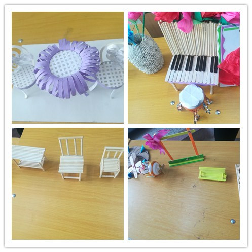 活動中,指導(dǎo)老師要求學(xué)生們充分利用身邊廢棄的飲料瓶、廢紙、塑料、布料、木料等廢舊材料,通過自己的創(chuàng)意,制作出體現(xiàn)科技、環(huán)保的工藝作品。活動布置后,同學(xué)們積極參與,充分利用網(wǎng)絡(luò)搜集相關(guān)資料及設(shè)計圖案,憑借豐富的想象力和創(chuàng)造力,將生活中的廢品制作成了各種各樣的手工藝術(shù)品。