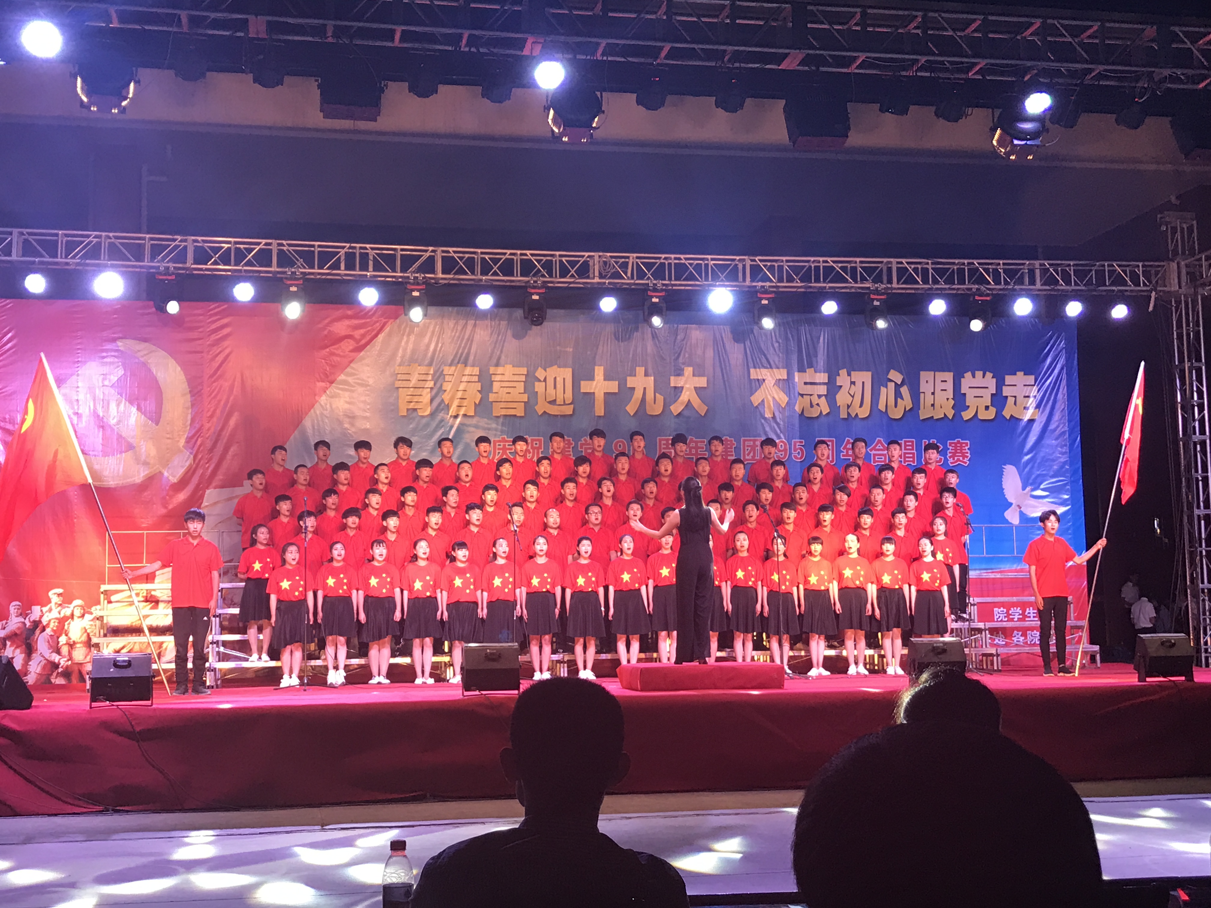 在持續(xù)半個(gè)月的合唱訓(xùn)練中,我系參加大合唱的90名同學(xué)和6位老師充分的準(zhǔn)備,以積極飽滿的態(tài)度投入到本次大合唱比賽的訓(xùn)練中,付出了大量的精力,放棄了許多休息時(shí)間,展現(xiàn)出了不怕吃苦,堅(jiān)持不懈,自強(qiáng)自信的精神。比賽中,隊(duì)員們齊聚在黨旗下,著裝整齊,精神飽滿,以高昂的熱情、嘹亮的嗓音唱出了對黨的擁戴,對未來的憧憬,贏得了評委及現(xiàn)場觀眾的熱烈掌聲。