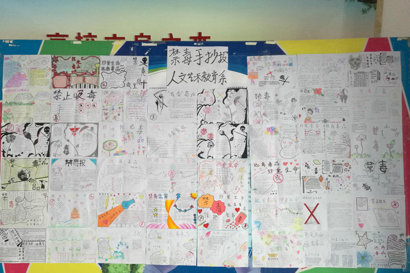 2017年10月18日-28日,人文藝術教育系各班均開展了“珍愛生命,遠離毒品”主題班會,在學生中進行禁毒宣傳。全系在校學生登錄中國禁毒網進行了禁毒知識的網絡答題。10月19日晚,人文藝術教育系召集學生觀看了“珍惜生命,遠離毒品”的禁毒警示片。此外,人文藝術教育系還制作手抄報來介紹禁毒知識。