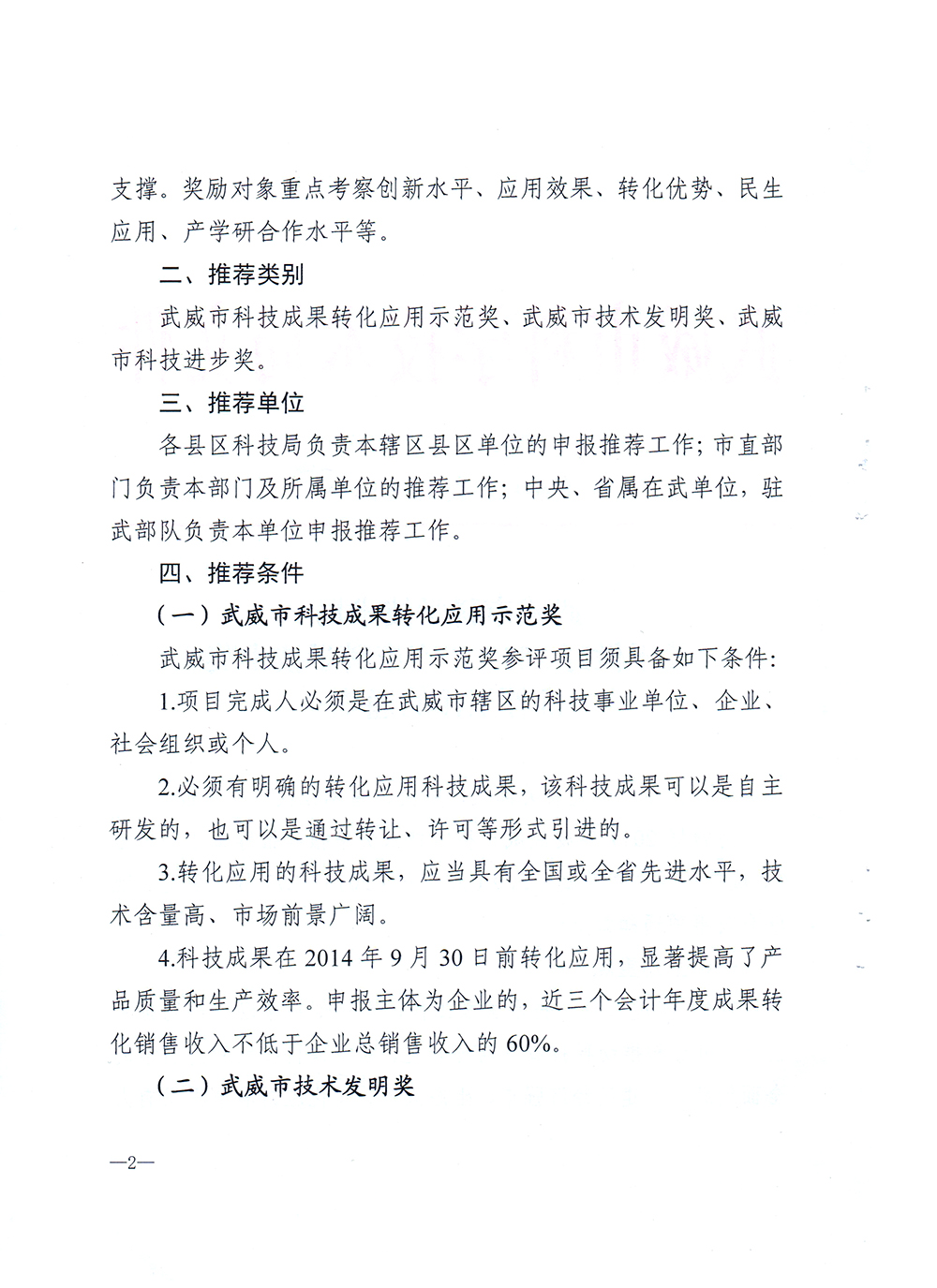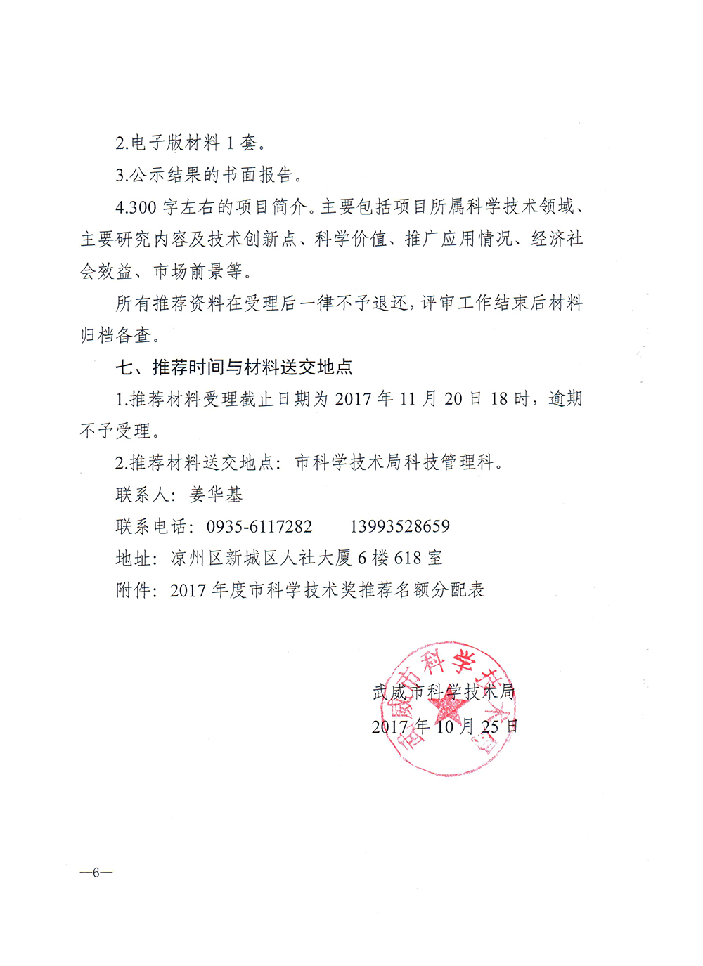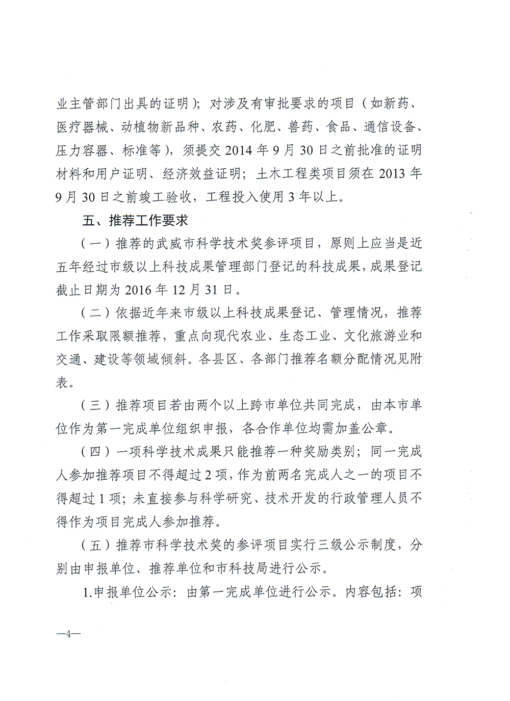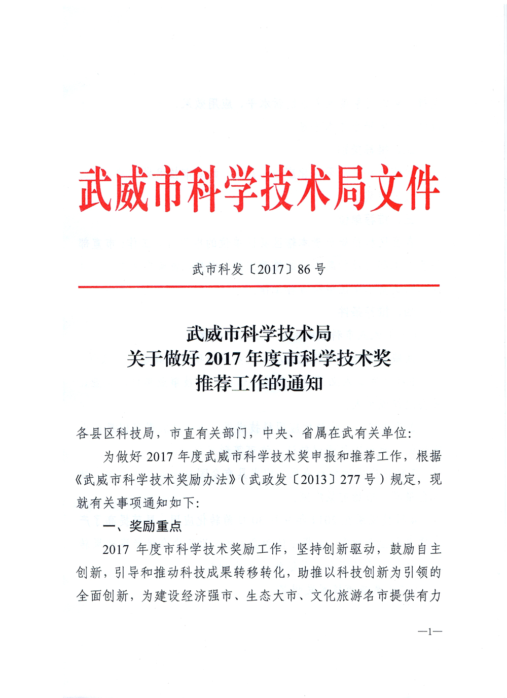轉(zhuǎn)發(fā)武威市科學(xué)技術(shù)局關(guān)于做好2017年度市科學(xué)技術(shù)獎推薦工作的通知