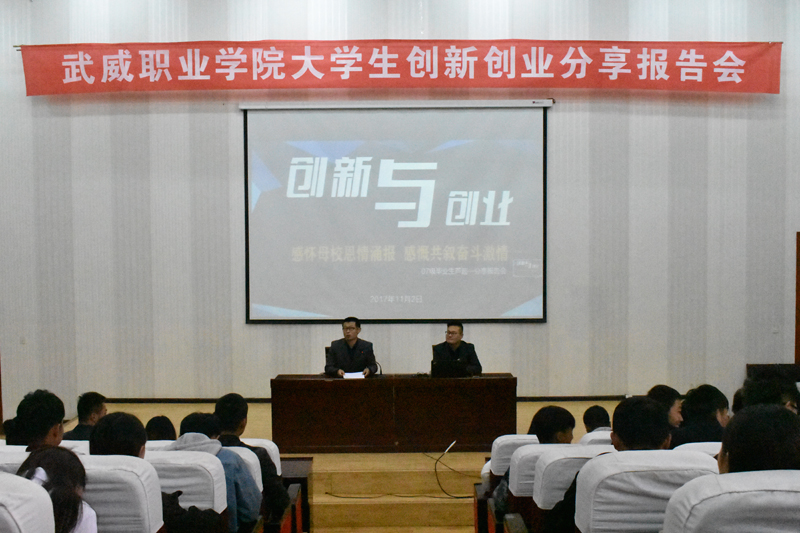 為進一步提升我院大學生的綜合素質和創(chuàng)新、創(chuàng)業(yè)能力,培養(yǎng)大學生的創(chuàng)業(yè)意識、思維和技能,增強大學生的專業(yè)信心及創(chuàng)業(yè)信心,以創(chuàng)業(yè)帶動就業(yè),正確引導同學們以健康積極的心態(tài)開展創(chuàng)新、創(chuàng)業(yè)及就業(yè)活動。2017年11月2日,我院07級優(yōu)秀畢業(yè)生蘆超創(chuàng)業(yè)就業(yè)分享報告會在學院正德廳隆重舉行。本次大會由創(chuàng)新創(chuàng)業(yè)中心承辦,我院07級畢業(yè)生蘆超,現(xiàn)任甘肅擺渡人文化發(fā)展有限公司總經(jīng)理、武威職業(yè)學院大學生創(chuàng)業(yè)導師、共青團創(chuàng)業(yè)宣講團成員、甘肅菜鳥電子商務有限公司特聘講師,應邀出席并做了精彩的報告。全院師生二百多人參加了此次大會,報告會由雙創(chuàng)中心胡建宏老師主持。