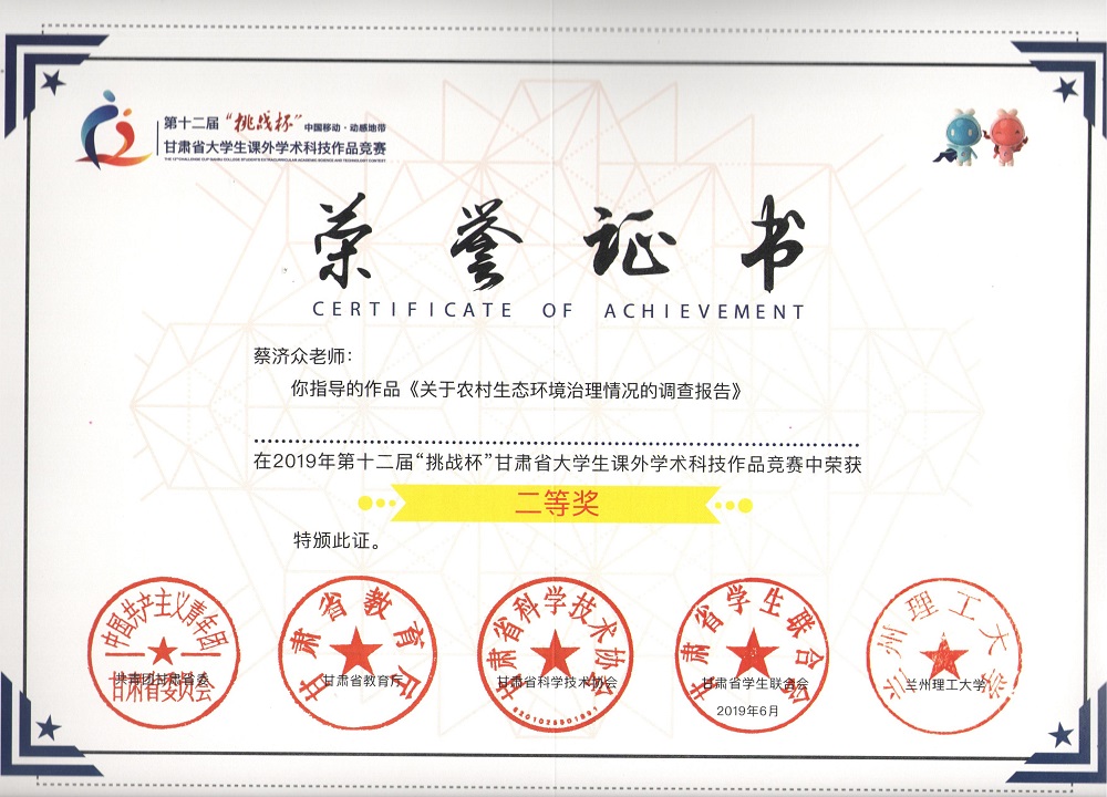 第十二屆“挑戰(zhàn)杯”甘肅省大學(xué)生課外學(xué)術(shù)科學(xué)作品《武威市基層常見病多發(fā)病現(xiàn)狀調(diào)查與診治對(duì)策研究》
