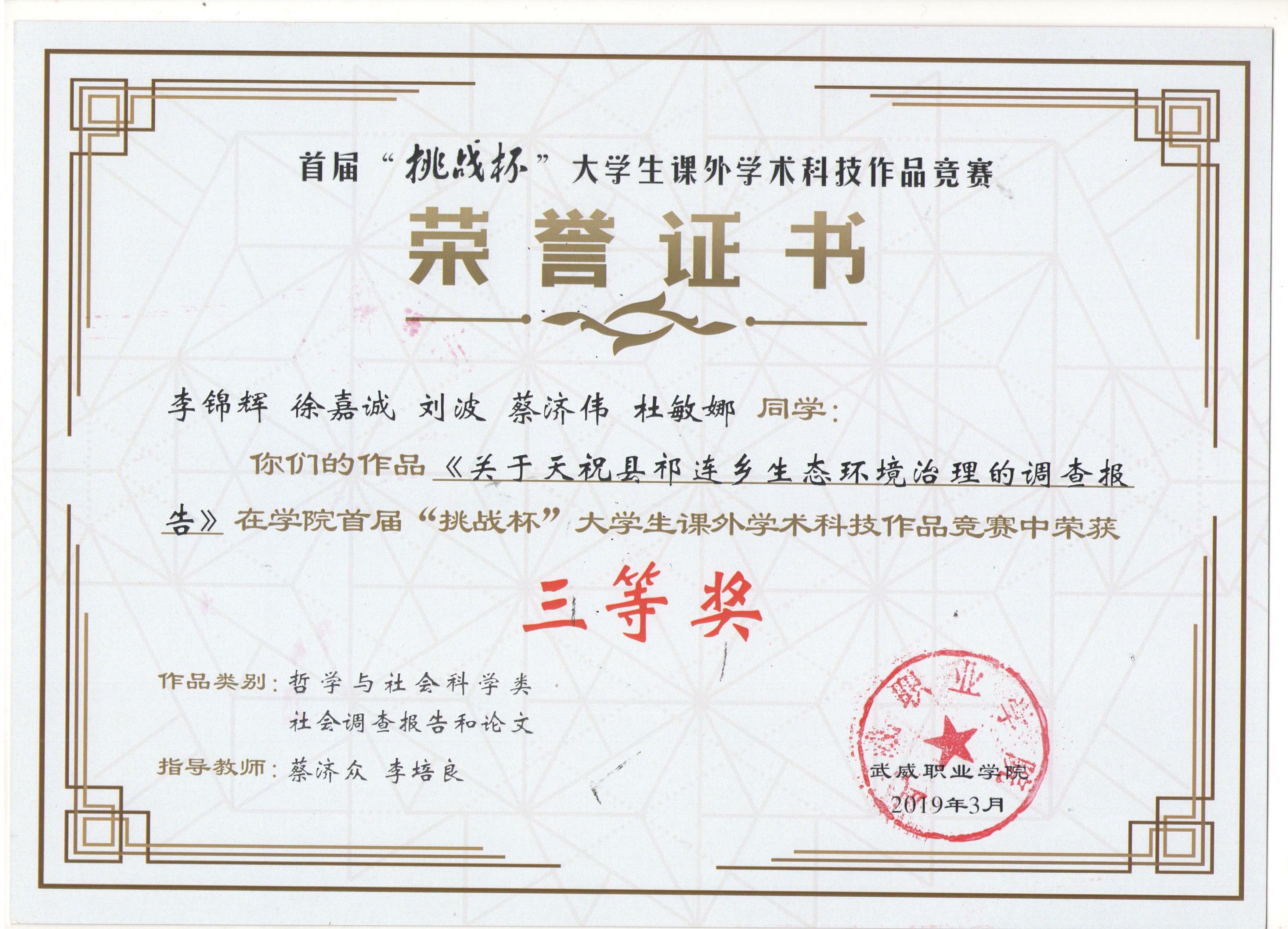 武威職業(yè)學(xué)院首屆“挑戰(zhàn)杯”大學(xué)生課外學(xué)術(shù)科技作品《關(guān)于天??h祁連山生態(tài)環(huán)境治理的調(diào)查報(bào)告》