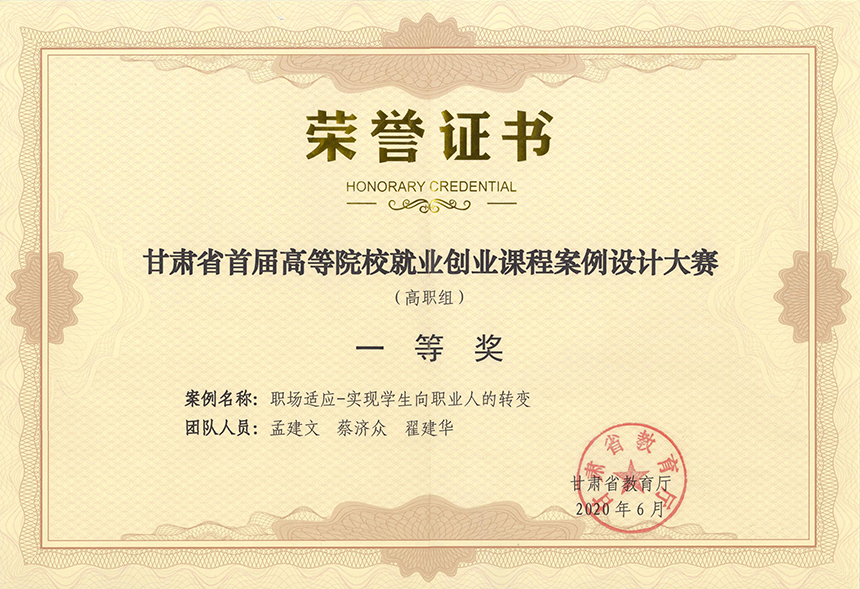 榮獲甘肅省首屆高等院校就業(yè)創(chuàng)業(yè)課程案例設(shè)計(jì)大賽(高職組)一等獎