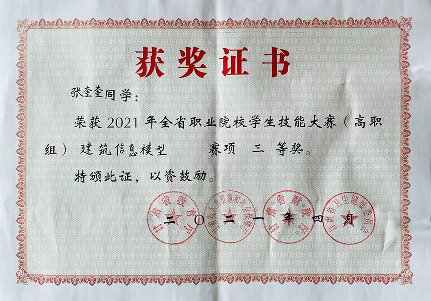 2021年全省職業(yè)院校學(xué)生技能大賽(高職組)建筑信息模式賽項(xiàng)三等獎(jiǎng)