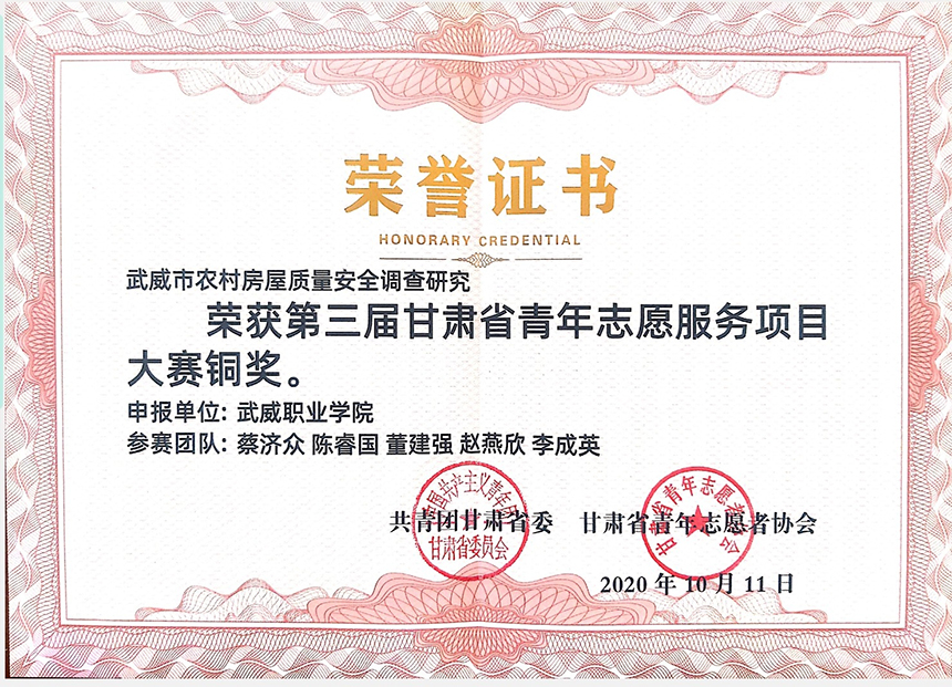 第三屆甘肅省青年志愿服務(wù)項(xiàng)目《武威市農(nóng)村房屋質(zhì)量安全調(diào)查研究》