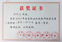 2.項(xiàng)目組成員趙特慶2019年5月榮獲2019年全省職業(yè)院校教師技能大賽(高職組)建筑工程識(shí)圖賽項(xiàng)二等獎(jiǎng)