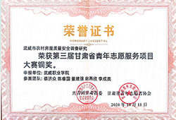 項(xiàng)目組成員蔡濟(jì)眾、陳睿國(guó)2020年11月主持項(xiàng)目《武威市農(nóng)村房屋質(zhì)量安全調(diào)查研究》榮獲第三屆甘肅省青年志愿者服務(wù)項(xiàng)目大賽銅獎(jiǎng)