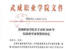 項(xiàng)目組成員崔玉萍、蔡濟(jì)眾2019年5月獲得武威職業(yè)學(xué)院院級(jí)教學(xué)成果