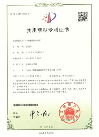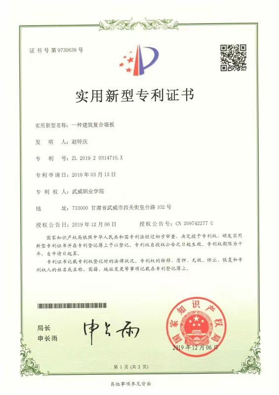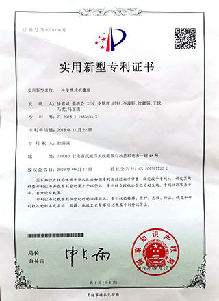 2019年12月項目組成員趙特慶獲得國家實用性專利授權(quán)1項