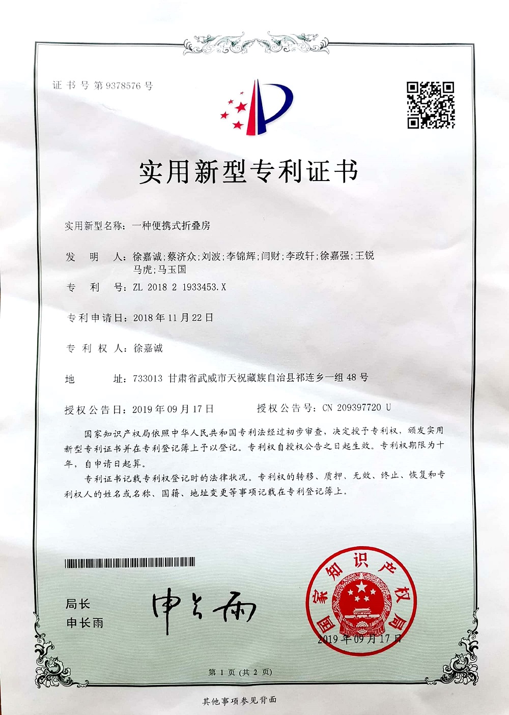 2019年9月項目組成員蔡濟眾獲得國家實用性專利授權(quán)1項
